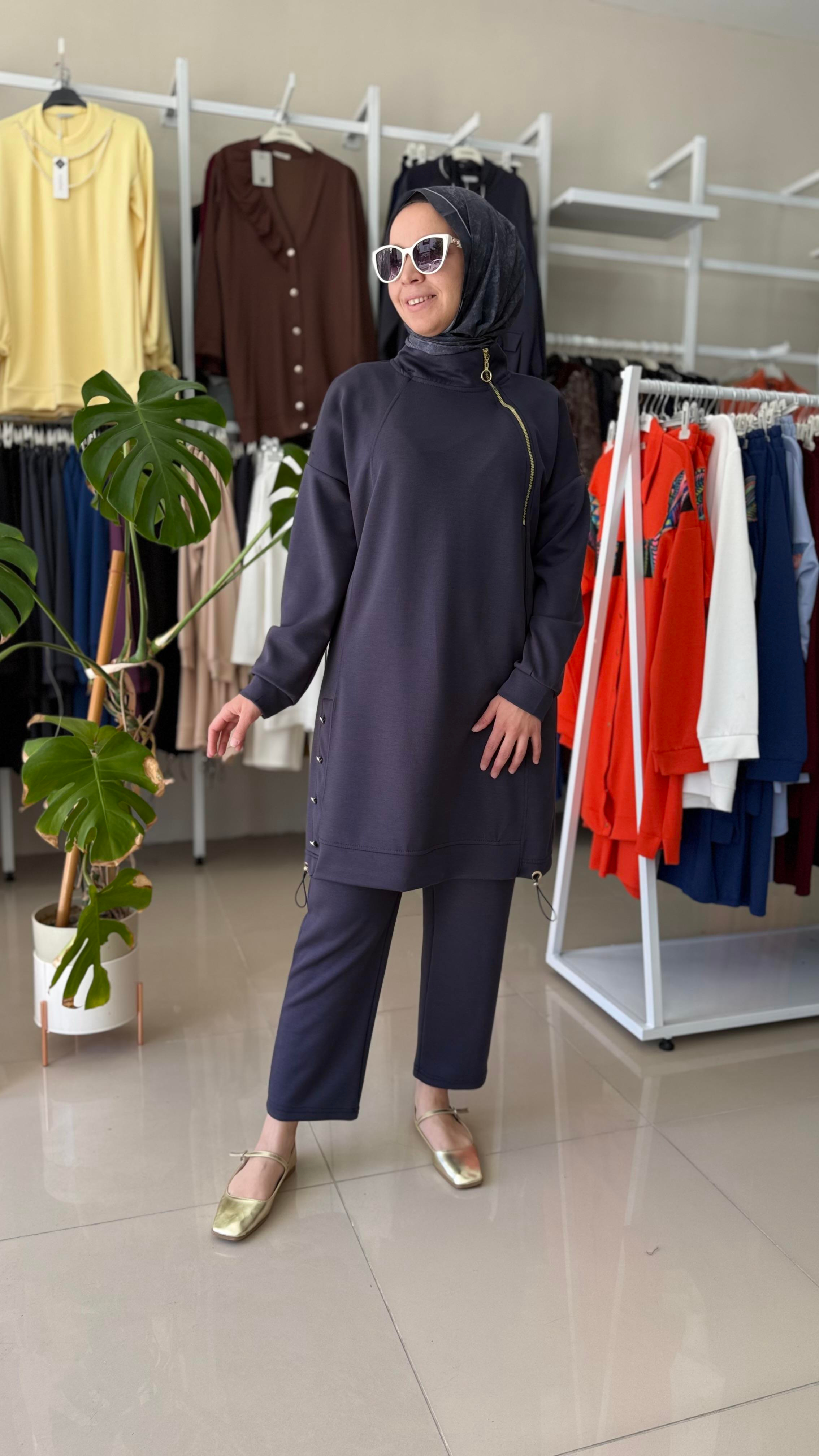 Antrasit fermuar detaylı takım 42 beden (Antrasit fermuar takım)