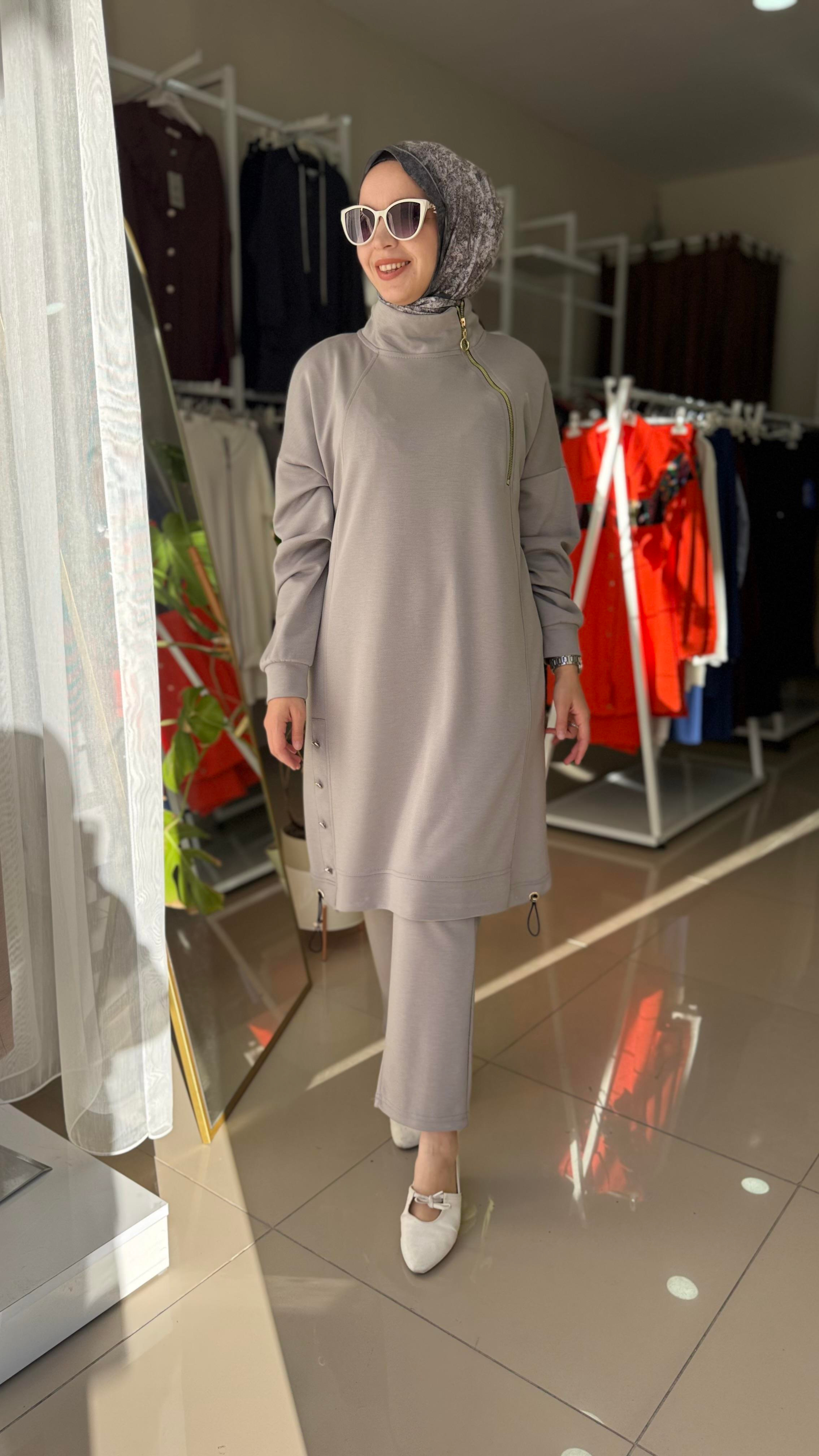 Fermuar Detaylı Oysho Takım Gri (Fermuardetaytakım)